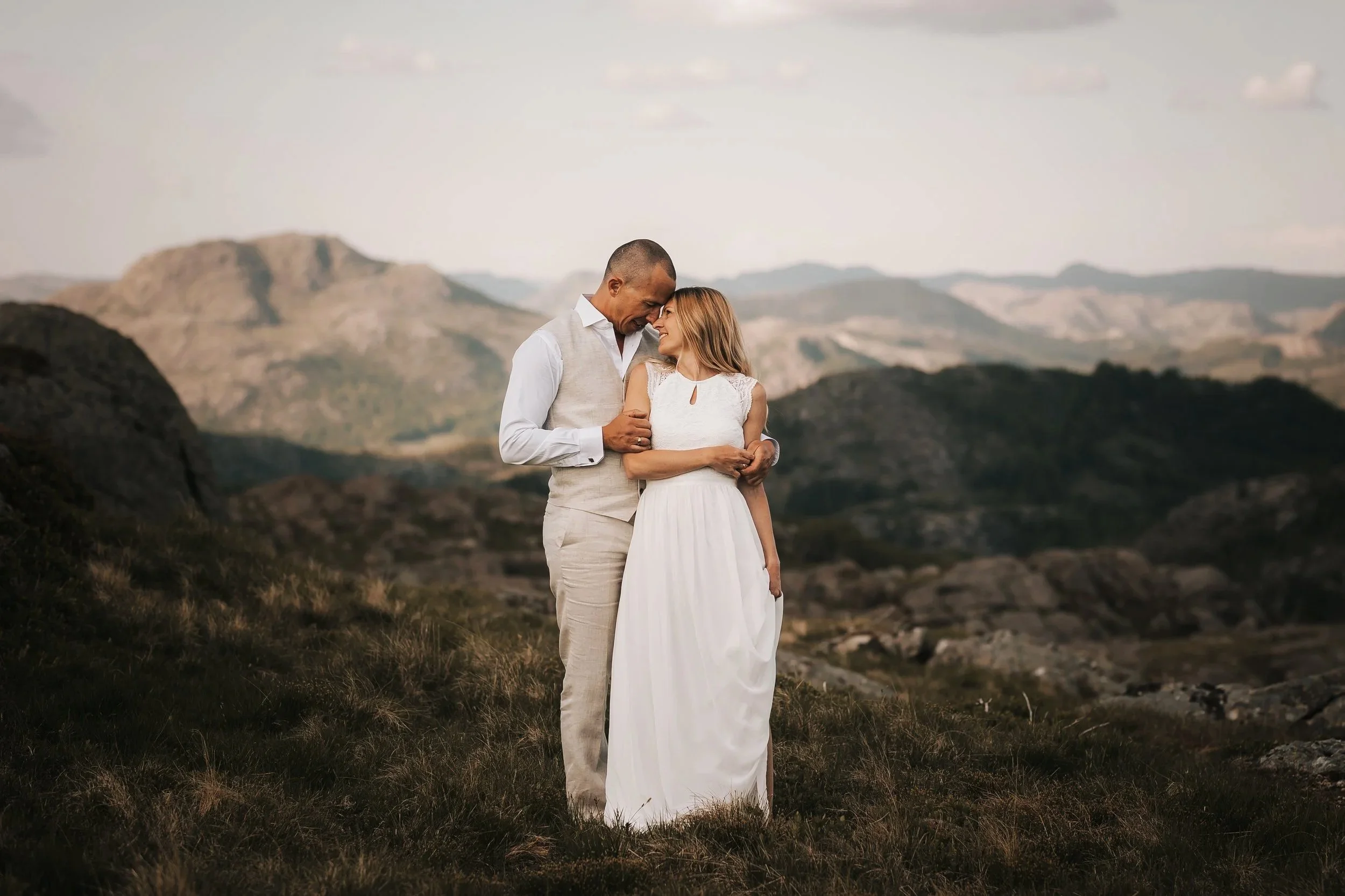 Når jeg ikke fotograferer bryllup, går jeg gjerne tur i fjellet med hundene mine.